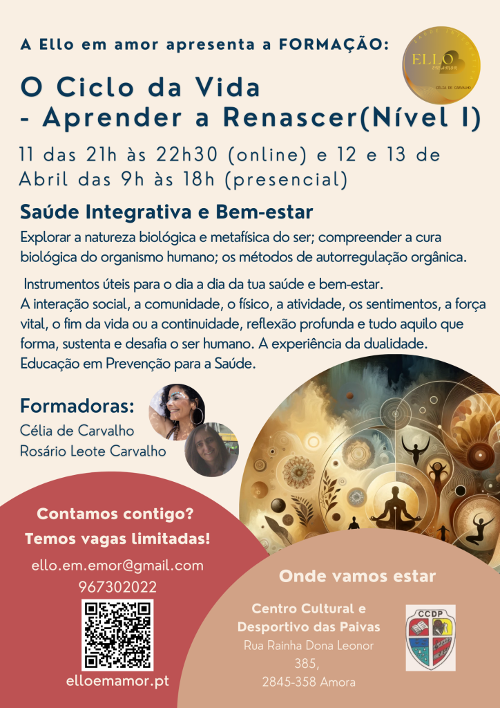 12 e 13 de Abril 2025, e ainda dia 11 entre as 21h e 22h30 online para uma breve apresentação de todos e introdução preparatória.